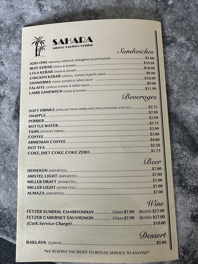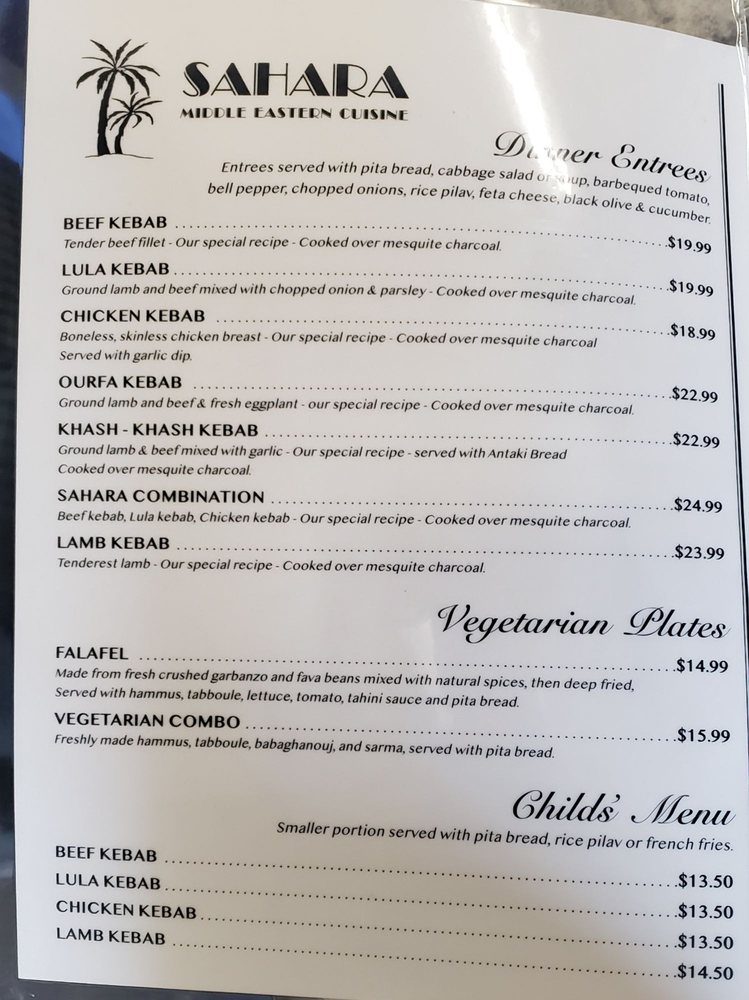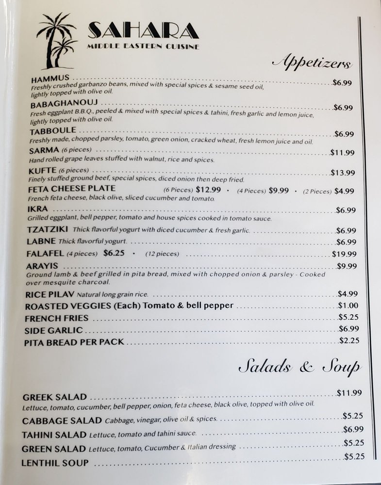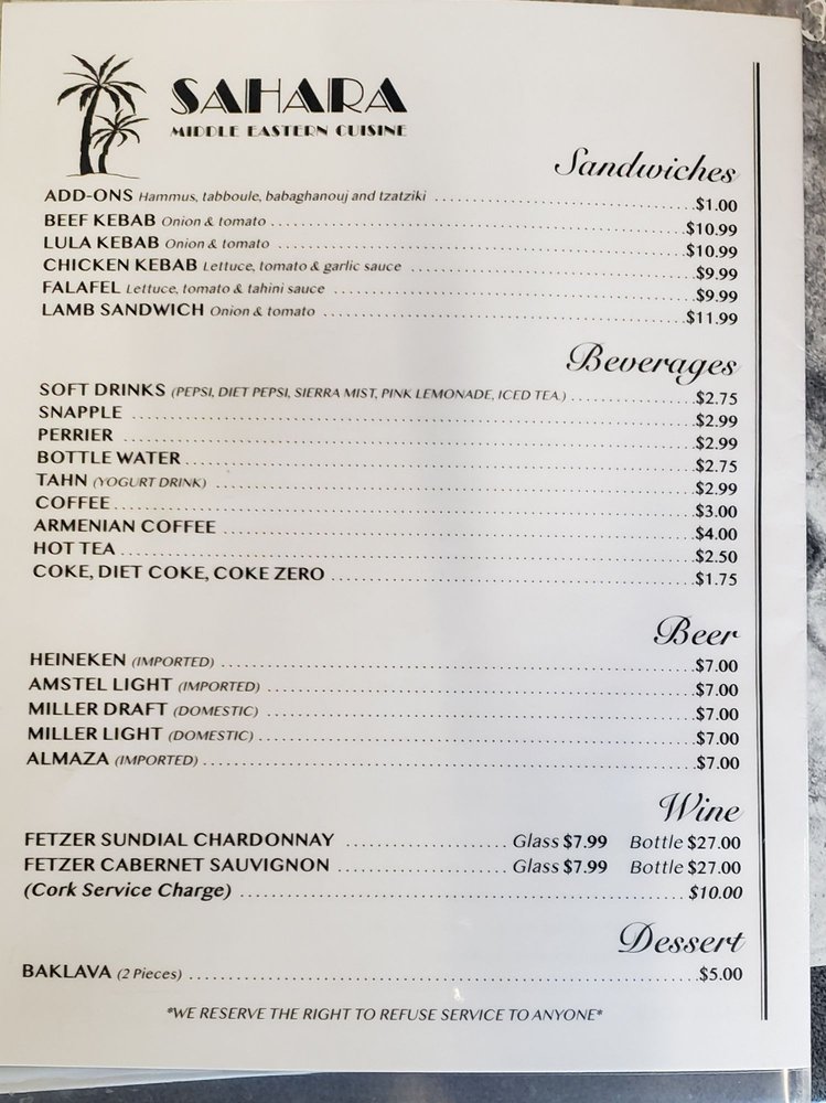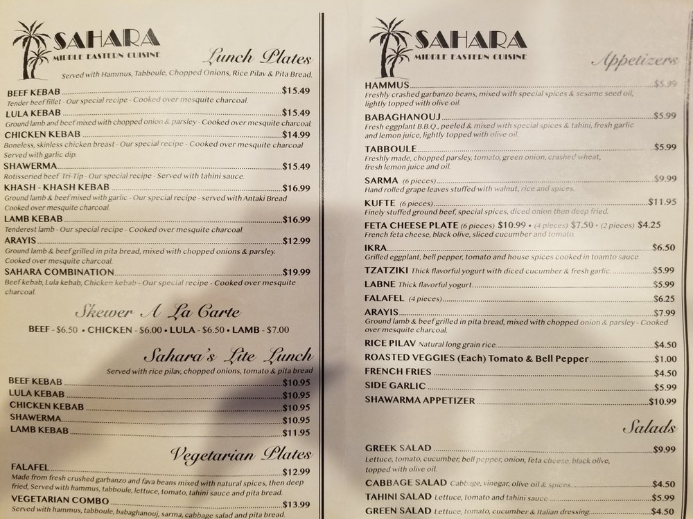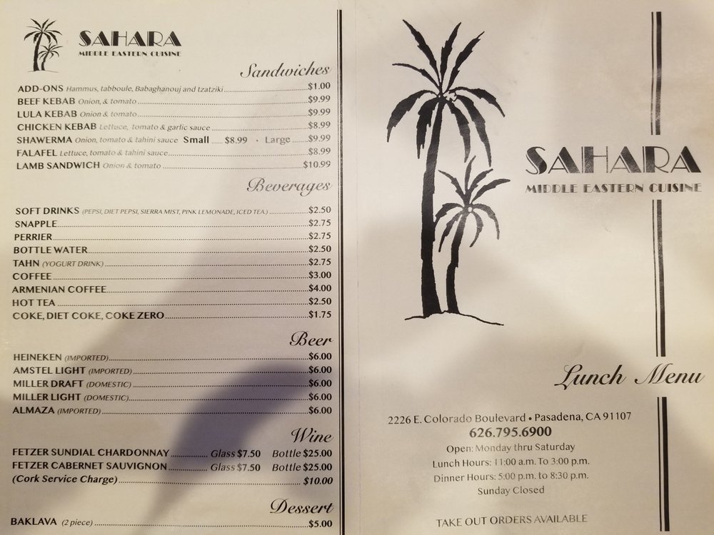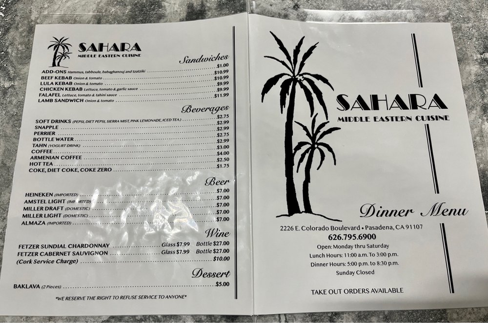 Sahara Restaurant Pasadena Menu (Update 2025)